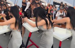 【BTC365幣投】超巨側乳正妹比腕力壓倒性勝利 超大胸肌讓圍觀民眾瘋狂!