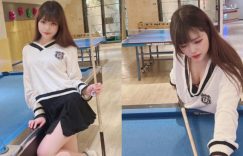 【BTC365幣投】學生妹「願願yuan」翹課打撞球 彎腰從領口內可以看到豐滿奶球