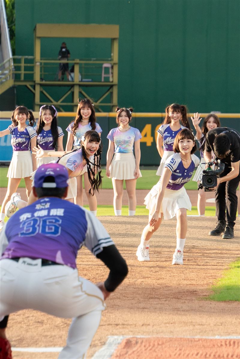 樂天桃猿年度「辣酷甜趴」於28、29日盛大登場,主場對戰中信兄弟,樂天女孩們全力應援,氣氛熱烈。睽違兩年,樂天女孩全體29日再次站上投手丘開球,圍成一個巨大的圈,最終由總隊長籃籃、紅隊隊長筠熹、副隊長雅涵,以及白隊隊長菲菲、副隊長若潼負責開球。五人同時投出球,球員低身接球,場面十分逗趣。