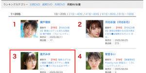 以上,是FANZA通贩部门、也就是贩卖实体片的排行榜心得。