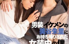 上一篇介绍美谷朱里在「本中」的作品,那ダスッ!(Das)呢?我们则是看到这支「男装イケメンの美谷朱里にお持ち帰りされた女装中の僕。」:干这就是我所谓脑洞大开的戏剧片了,有个男优名唤「小梅」,平时的兴趣就是做女装打扮在街头乱逛ー先别急着骂片商乱来,因为这小梅是个双插头,有时候会穿女装拍AV,有时候也会拍GAY片,所以穿女装在路上乱逛也很正常啦;而当他逛累了,找了间咖啡厅坐下来小憩一下时,有个五官非常秀气的短发男子美谷桑前来搭讪,小梅觉得屁股痒痒的,于是就和「他」去开房了:
