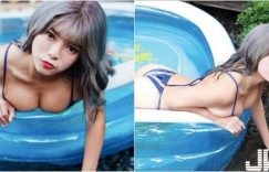 【BTC365幣投】「巨乳小隻馬」玩水啦!自製泳池裝不下「飽滿大奶」,都快從旁邊溢出來了!